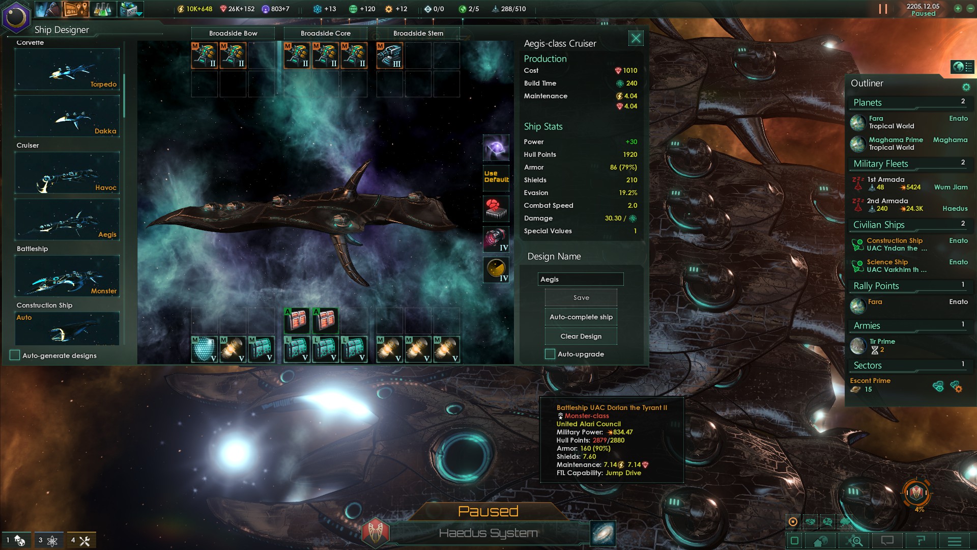"Aegis cruiser - flak PD and anti-corvette cruiser."
