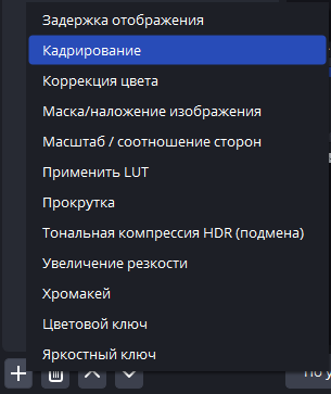 2) В появившемся окне нажмите на "+" в нижнем левом углу, и выберите "Кадрирование"