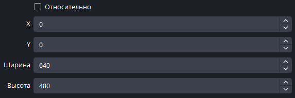 3) В кадрировании уберите галочку с "Относительно", а затем укажите нужный размер области через "Ширина" и "Высота", а также расстояние от левого верхнего края экрана через "X" и "Y"