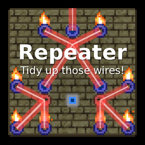 添加一个中继器对象,在 配线站(wiring workstation) 制作它。它的用途是协助与制作清晰的布线网络控制灯等情况下几层楼对面一个开关或传感器。
