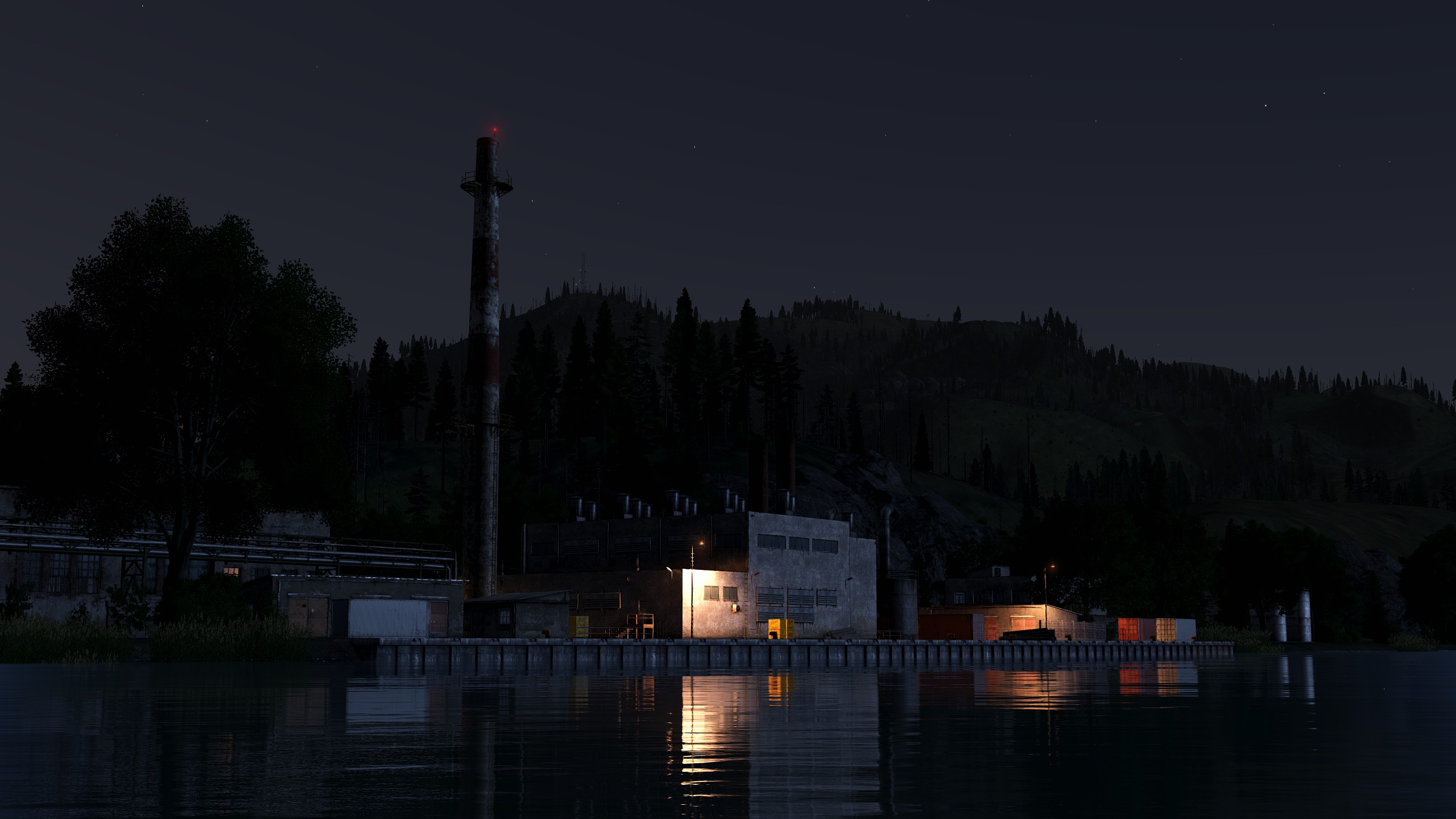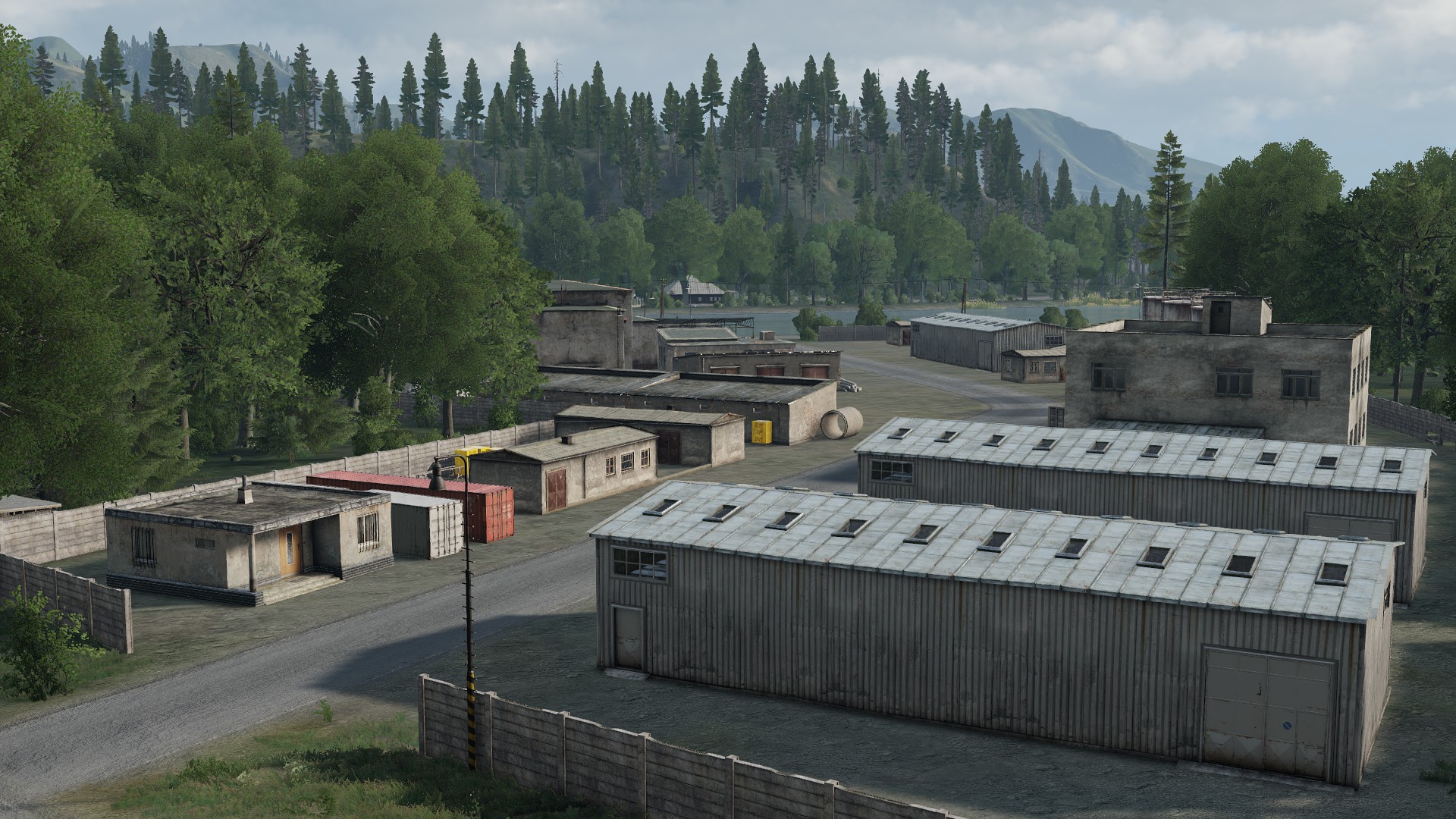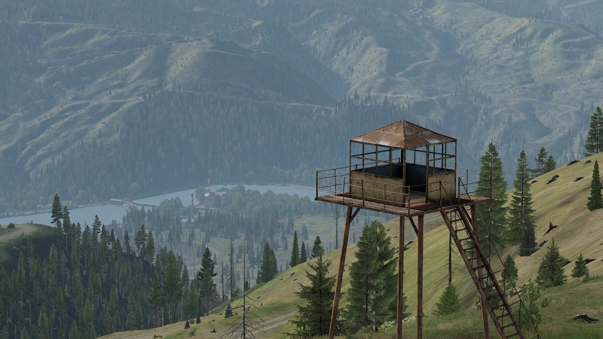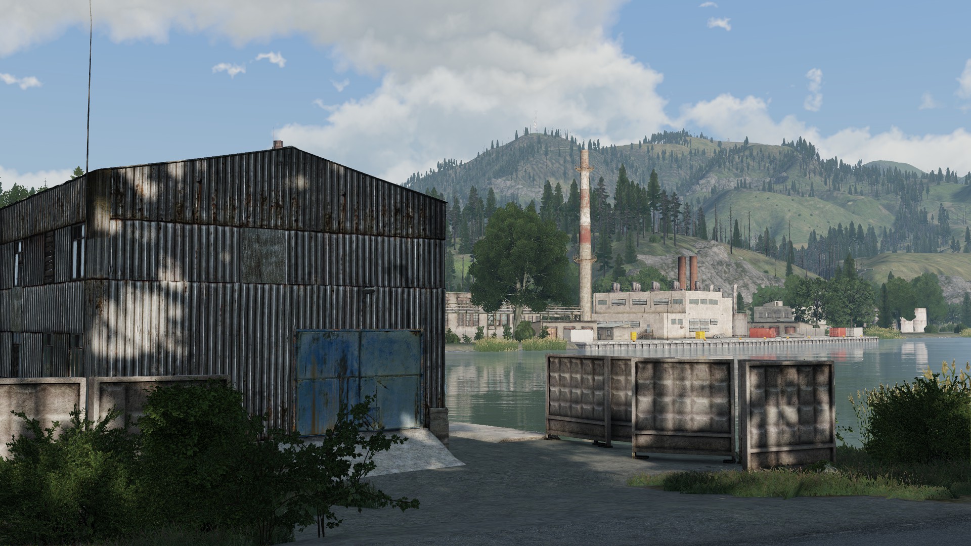 - Landmarks such as industrial sites, lumber mills, market centers, farms, a small civilian airstrip, an electric plant, an abandoned radar station, and a dam