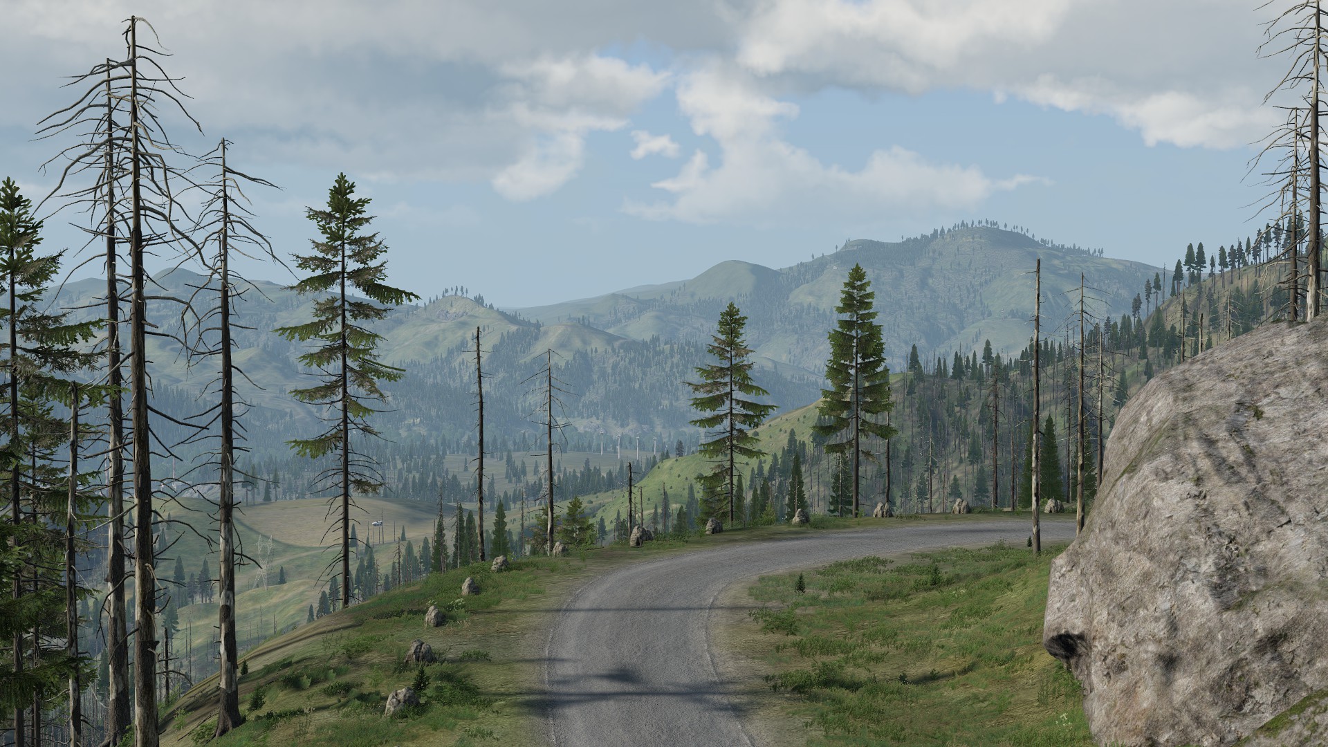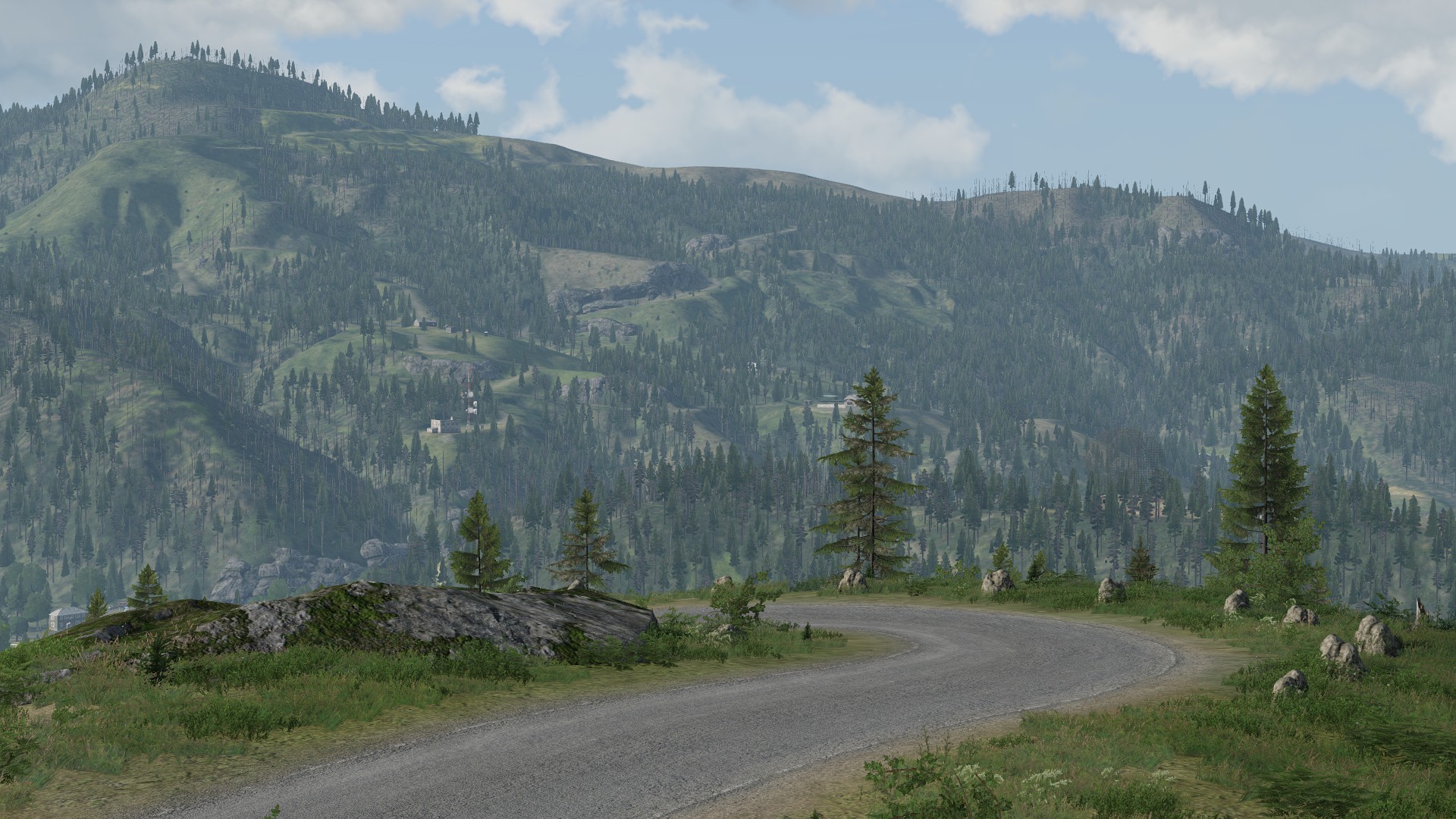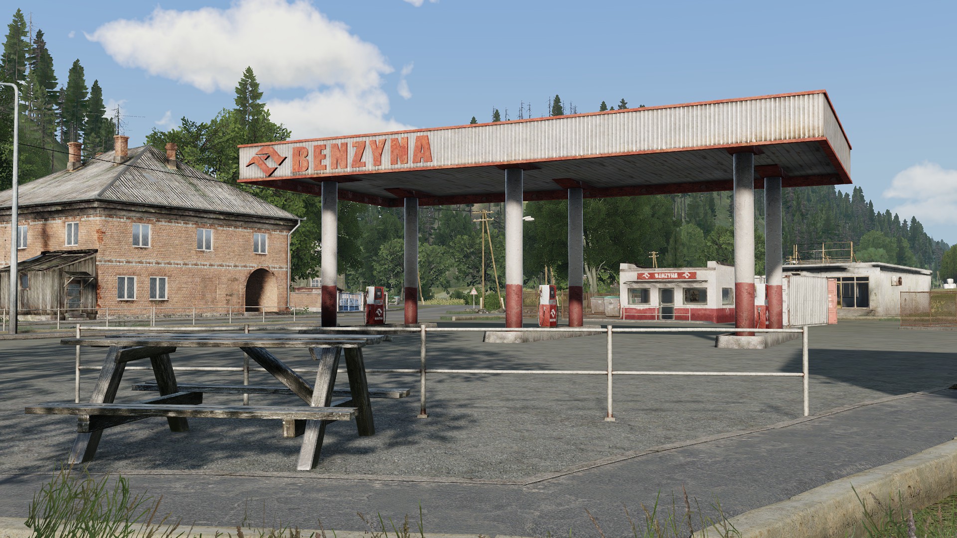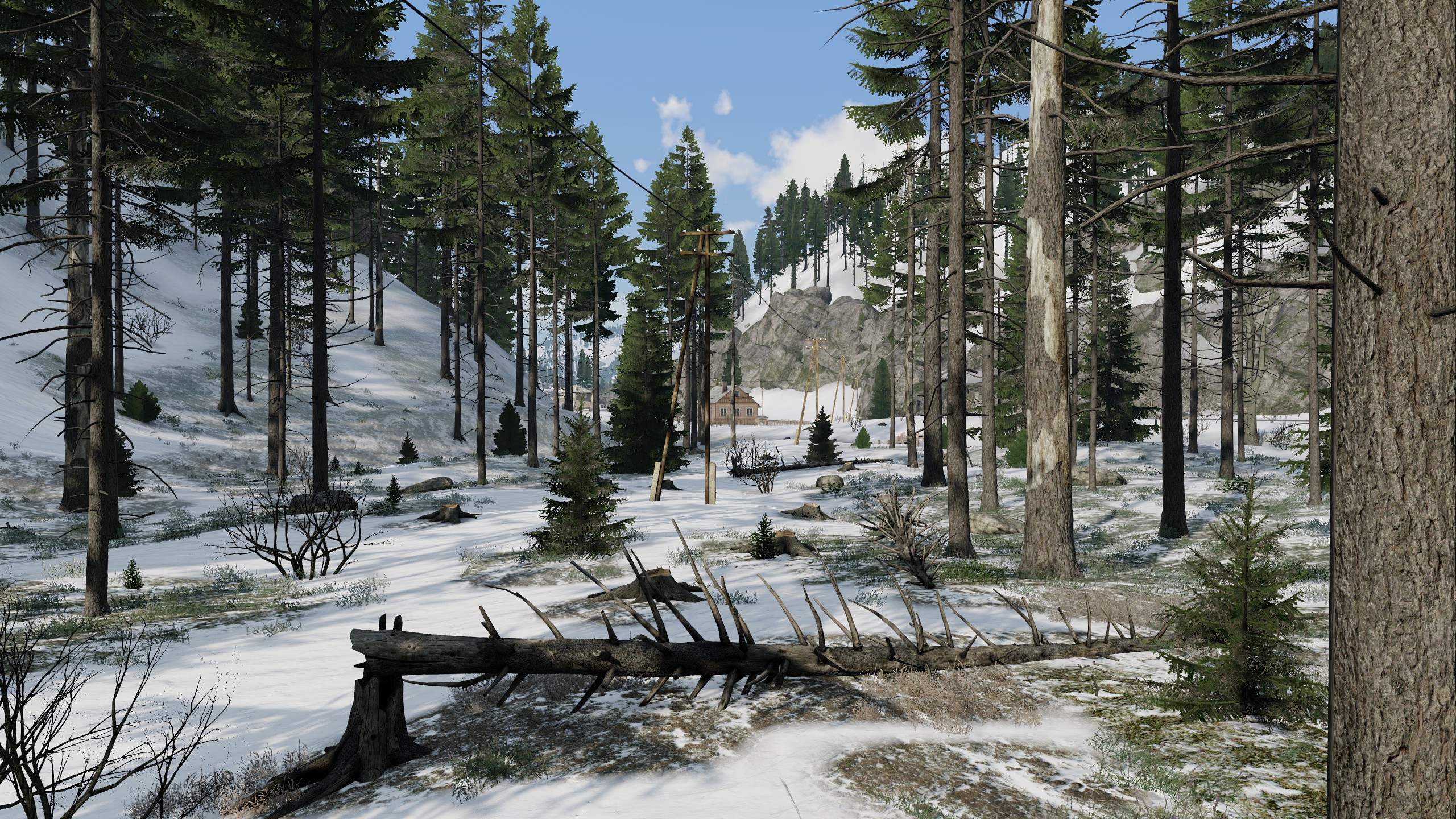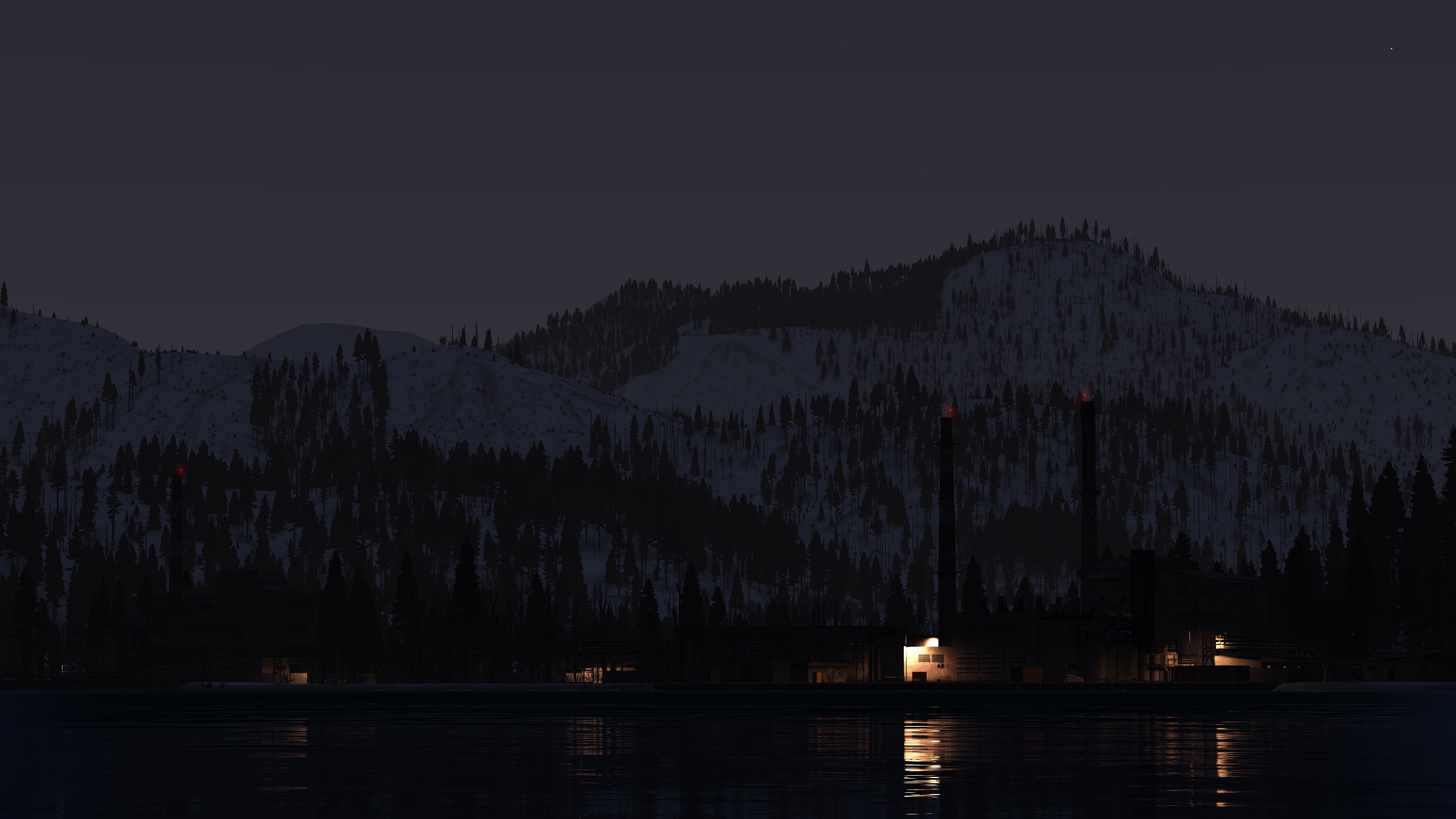 - Landmarks such as industrial sites, lumber mills, market centers, farms, a small civilian airstrip, an electric plant, an abandoned radar station, and a dam