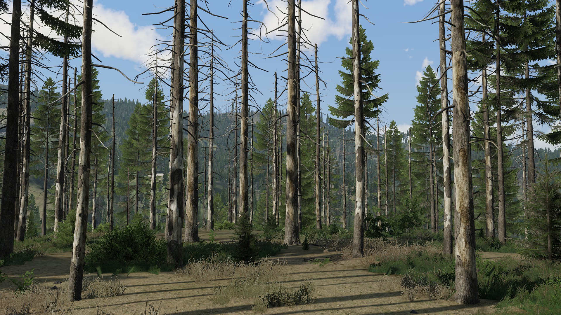 - Different types of forest and vegetation in various states of growth (dead, logged, growing, and flourishing)